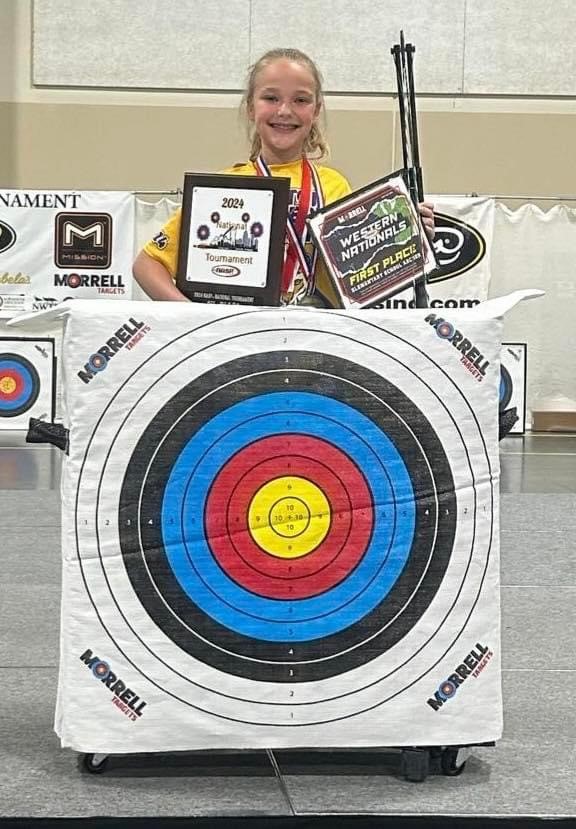 Benton Intermediate School’s Korie Gallagher shot 282 to win the girl’s elementary school bullseye division in the National Archery in Schools Program (NASP) Western National Championship held in Sandy, Utah, on April 26-27. Gallagher helped lead Benton Intermediate to second place in the NASP Bullseye Tournament in the elementary division.