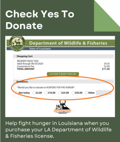 “We are calling upon the hunting community to join in the fight against hunger in Louisiana through donating game meat to organizations that serve those in need,” said Louisiana Department of Wildlife and Fisheries Secretary Madison Sheahan. ”We hope that this month will serve as a reminder on the important role that hunting plays in the community and the responsibility we share as the Sportsman’s Paradise.”