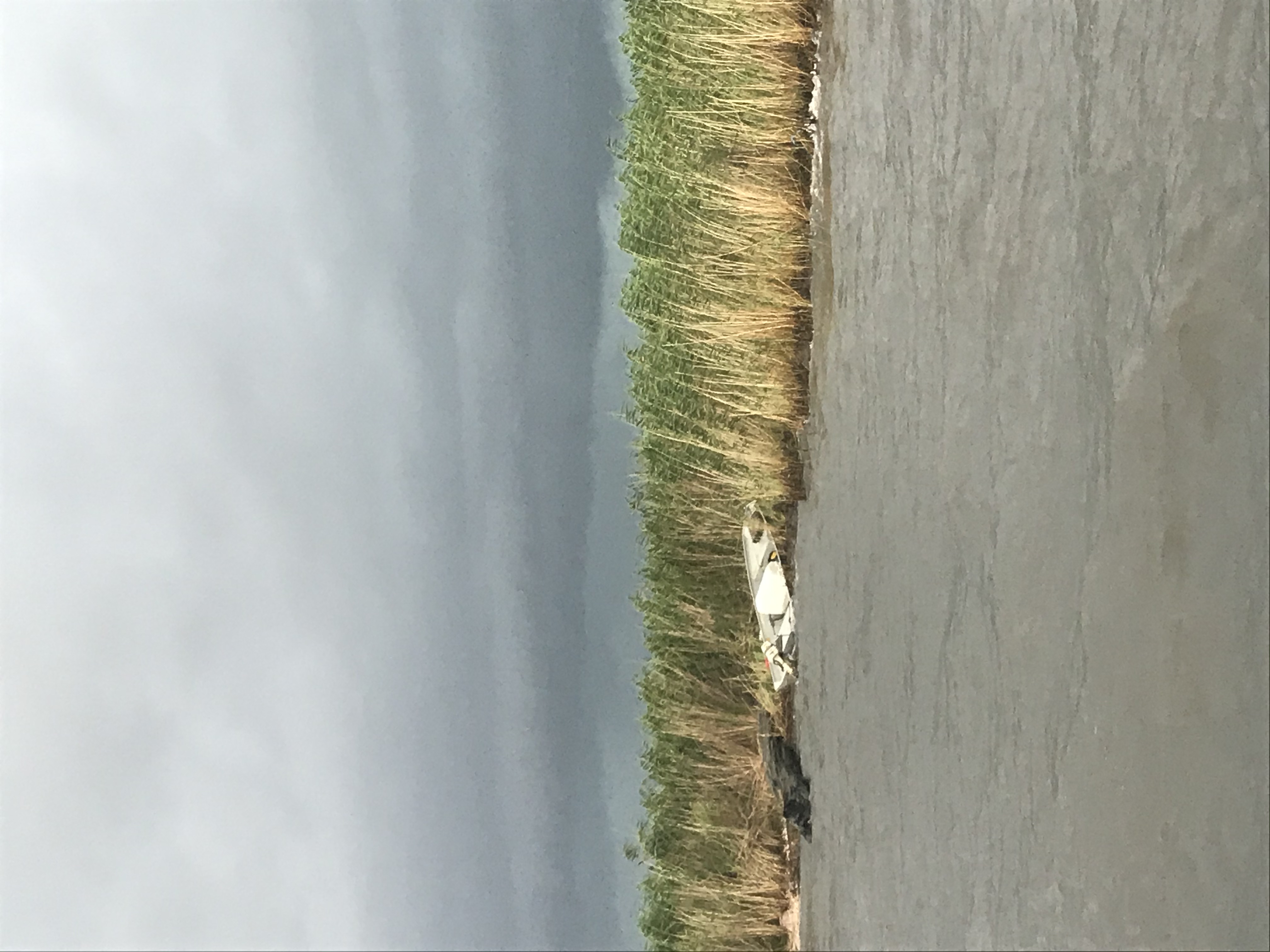 | Agents heading back in bad weather after rescuing 3 people | Beached vessel in marsh |