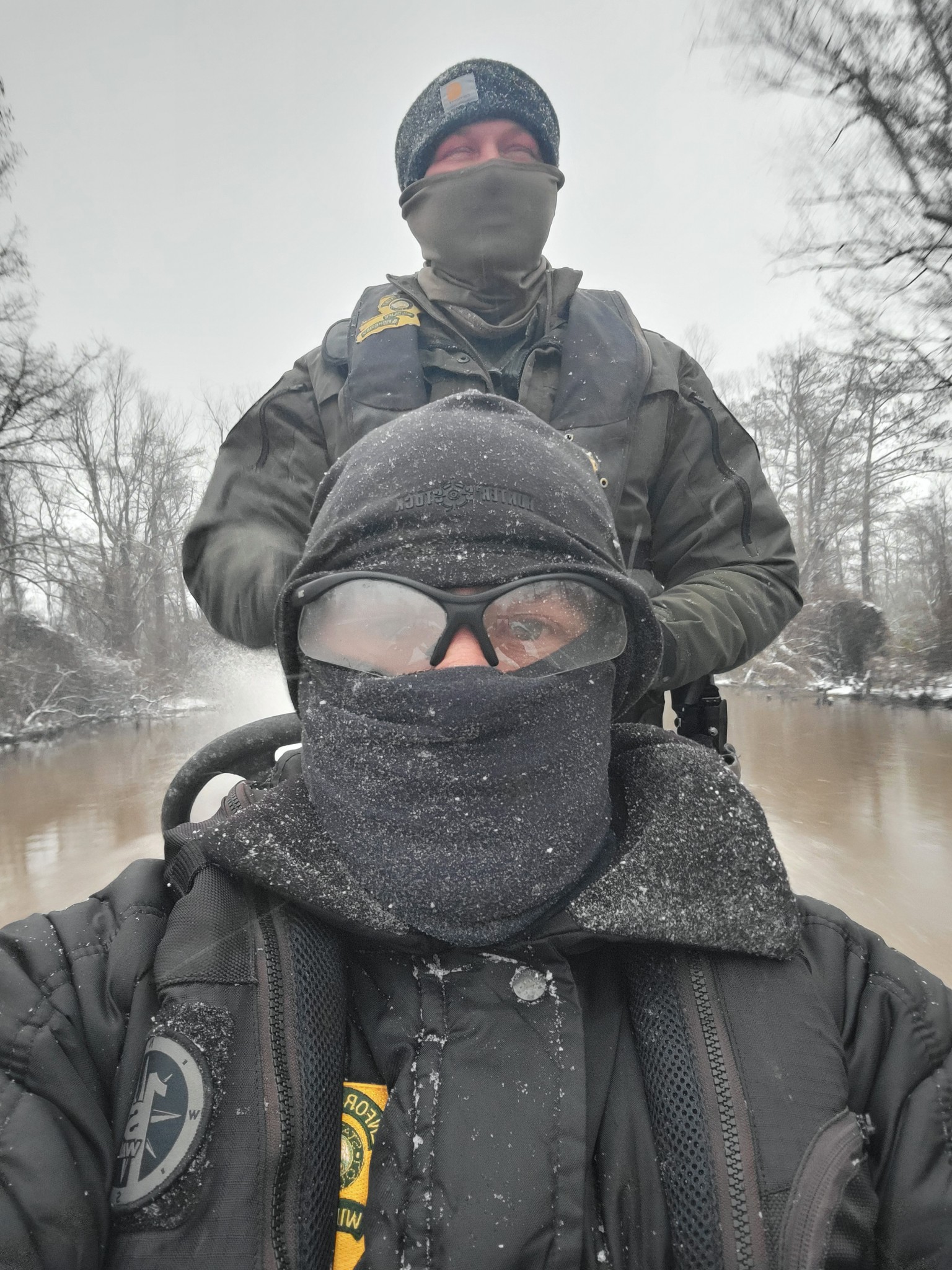 Louisiana Department of Wildlife and Fisheries enforcement agents successfully rescued two stranded hunters this morning, Jan. 21, in St. Martin Parish during the winter snowstorm.