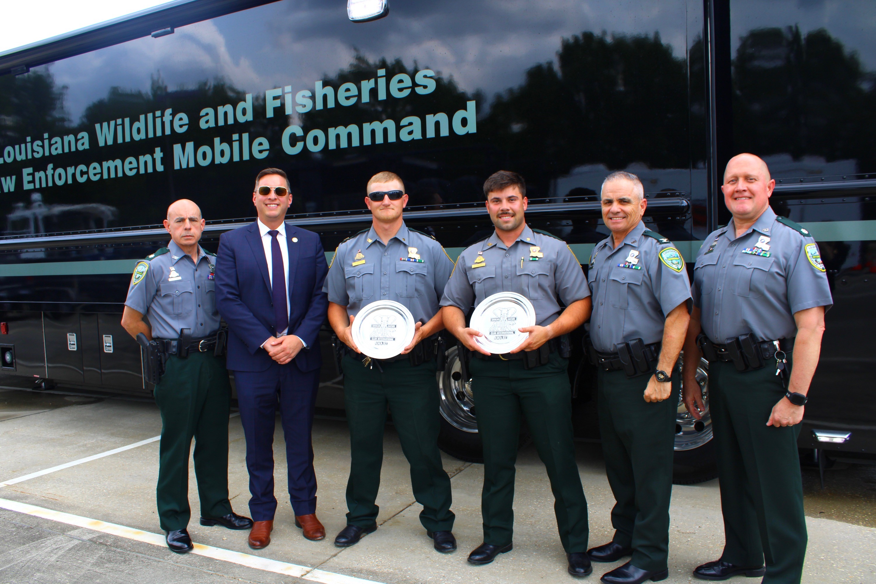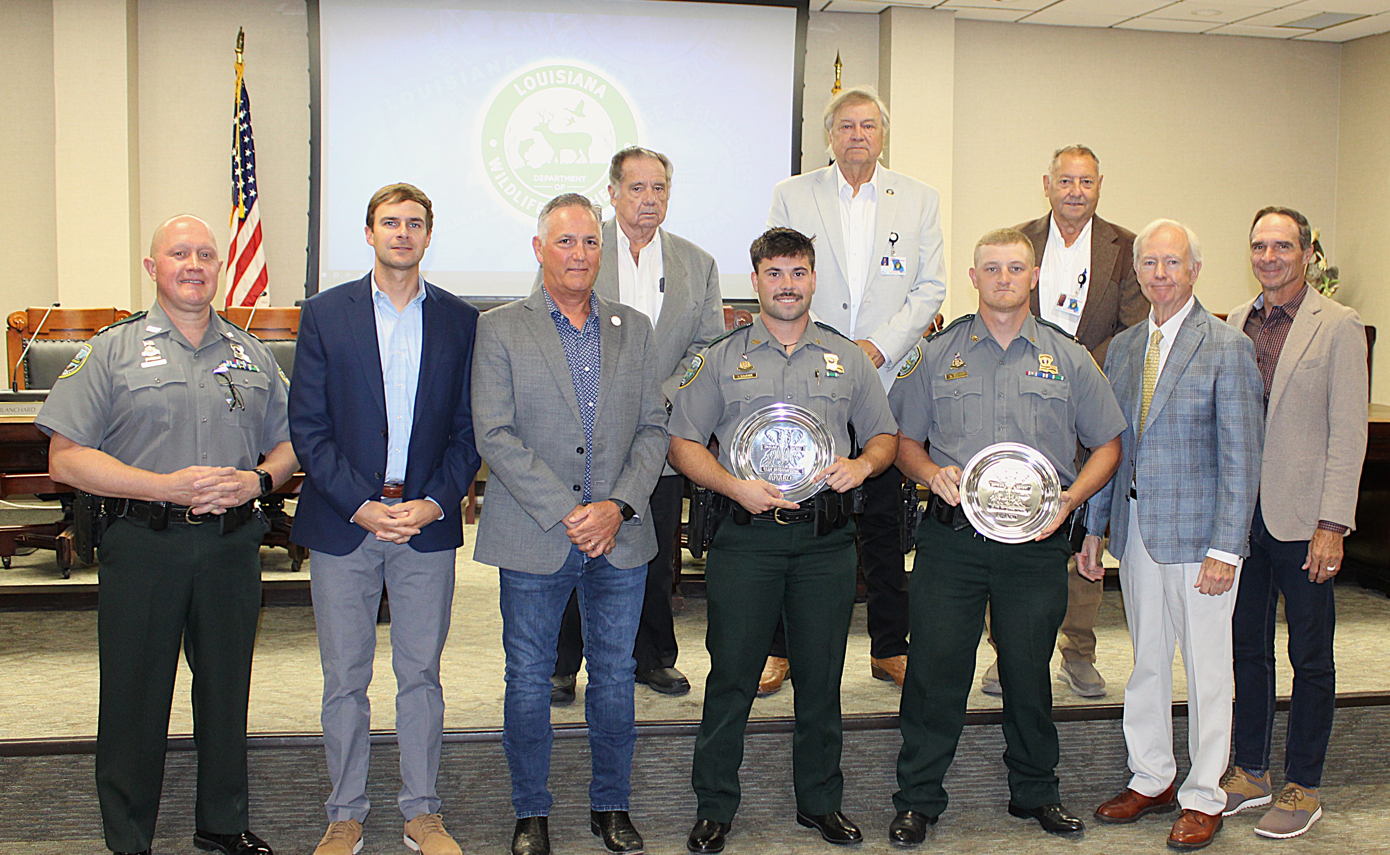 Two Louisiana Department of Wildlife and Fisheries (LDWF) enforcement agents were honored at the June 3 Louisiana Wildlife and Fisheries Commission meeting held in Baton Rouge.