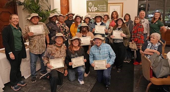 The Louisiana Department of Wildlife and Fisheries (LDWF) celebrated their top Aquatic Volunteer Instructors (Aquatic VIP) at an Appreciation Banquet on Thursday, October 30th, 2025 in Baton Rouge, LA. Volunteers who logged a minimum of 15 hours between July 1, 2024, and June 30, 2025, were honored at the banquet for their dedication and impact. Prior to kicking off the banquet and awards ceremony, the Aquatic VIPs attended an extended education presentation about LDWF’s LA Creel program.