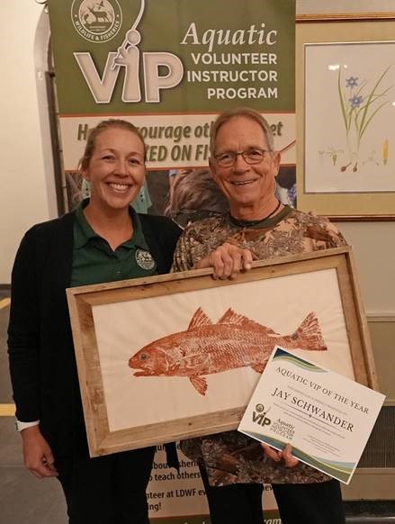 Banquet honorees are part of LDWF’s Aquatic Volunteer Instructor Program, where they are trained and certified by Fisheries Outreach and Education staff and allow the Department to educate more youth and adults across the state about Louisiana’s fisheries and aquatic resources. Volunteer hours play a vital role in supporting LDWF’s mission, as they are used to match federal funding received through the Sport Fish Restoration fund. In the fiscal year 2024-2025, Aquatic VIPs logged over 3,700 volunteer hours and contributed in-kind match to our federal funding source. Aquatic VIPs and LDWF Fisheries Outreach staff participated in 165 events and had over 17,000 face-to-face interactions. Aquatic VIPs are essential for educating and promoting the wise utilization of Louisiana’s fisheries resources.