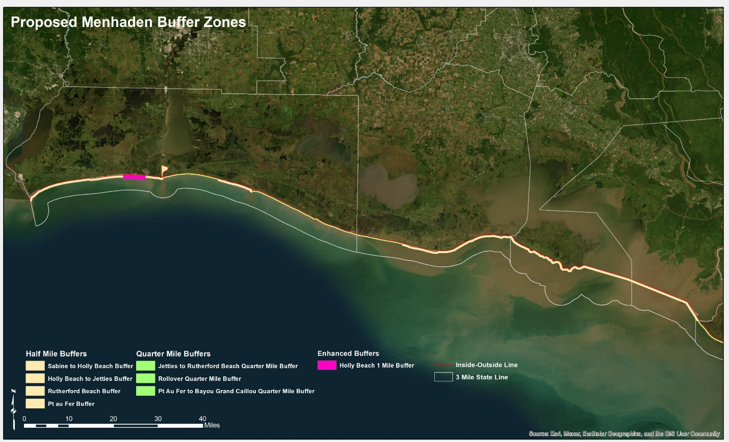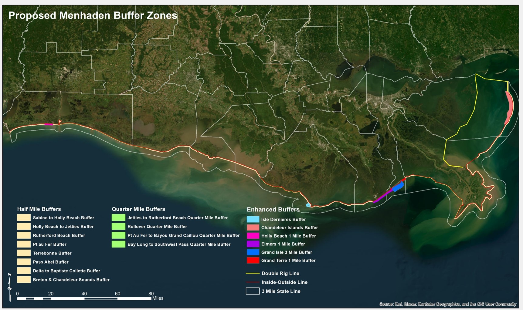 The Louisiana Wildlife and Fisheries Commission passed a Notice of Intent (NOI) to modify the commercial menhaden fishery buffers off the Louisiana coast.