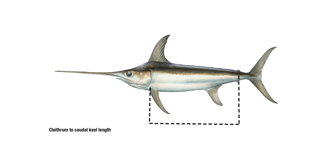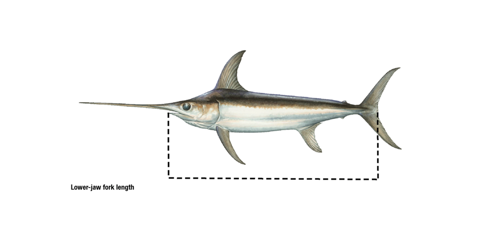 Swordfish regulations would also be modified to adjust the legal size limit from a minimum carcass length of 29 inches or a dressed weight of 33 pounds to a minimum size limit of 25 inches Cleithrum to Caudal Keel (CK) length or a minimum size limit of 47 inches Lower Jaw Fork Length (LJFL). Additionally, Roundscale Spearfish would be added as a harvestable billfish with a minimum lower jaw fork length of 66”.