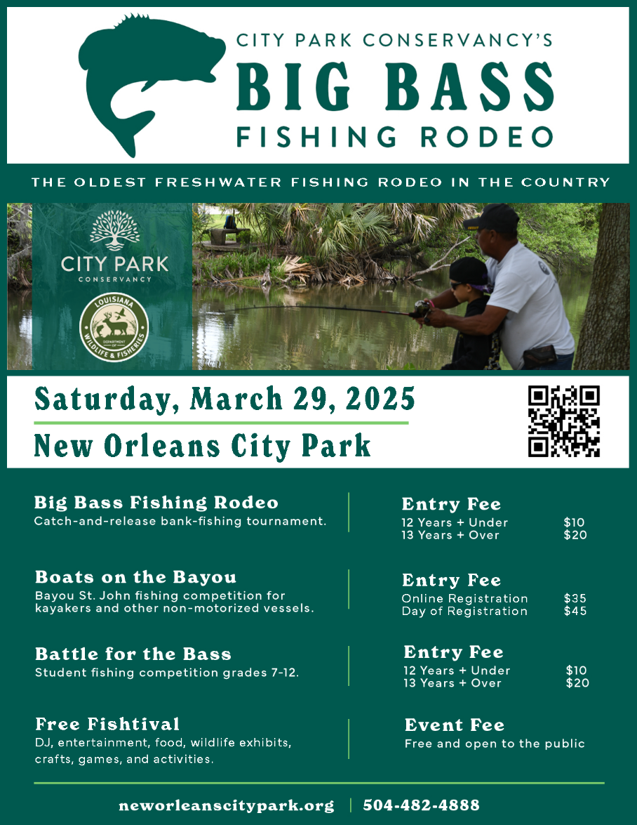 Be sure to check out the City Park Big Bass Fishing Rodeo webpage for more information and ways to register later this year. Mark your calendars and join us on March 29, 2025, as we make the 76th Annual Big Bass Rodeo and Fishtival the biggest and bassiest year yet!