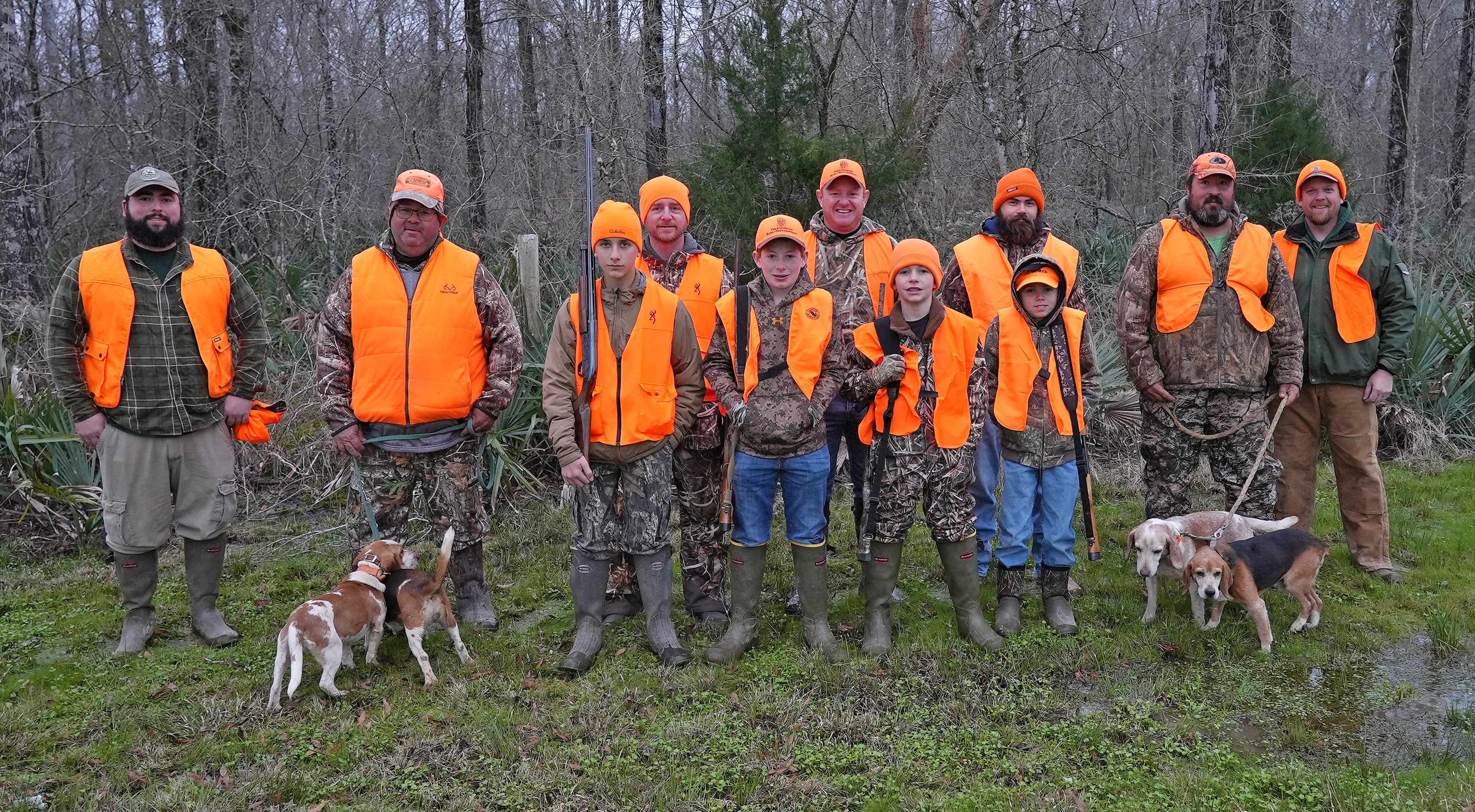The four young hunters, each accompanied by an adult partner, gathered at the Dewey Wills WMA headquarters building at 6:30 a.m. for a safety briefing before heading out into a restricted portion of the WMA reserved just for their hunt. Trained hunting beagles were used to help locate and flush the rabbits.