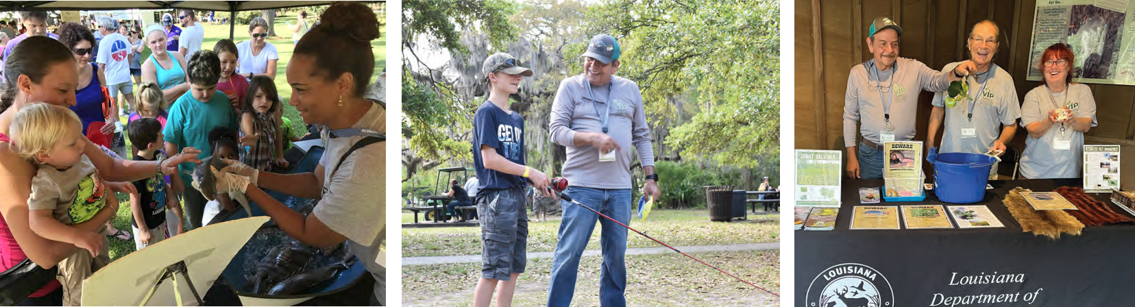 Aquatic Volunteer Instructors (aka VIPs) are trained by LDWF staff to help teach youth and adults about topics such as fish identification, fish anatomy, knot tying, casting techniques, invasive species, pond ecology, marine debris, and fisheries management. Upon successful completion of the training, certified VIPs have free access to loaner kits, activity guides, lesson plans aligned to state standards, and other educational aquatic and fishing resources.