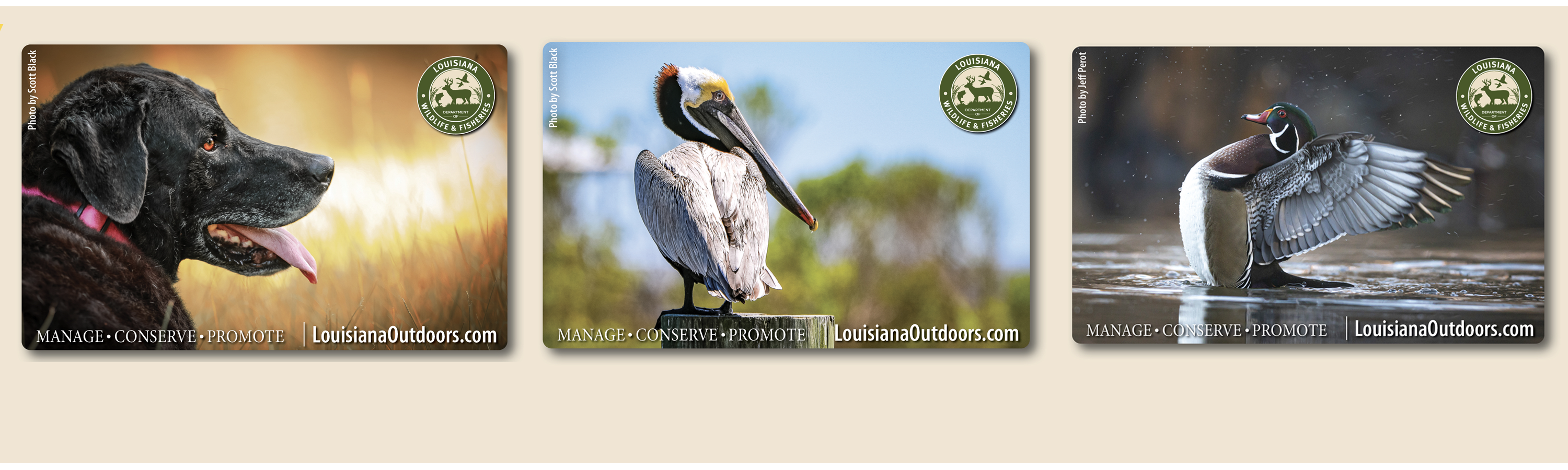 The Louisiana Department of Wildlife and Fisheries began selling durable collector’s license cards in April of 2024. These collectible cards will allow you to carry all of your active licenses on one long-lasting card that fits right in your wallet. These collector cards feature artwork from our very own outdoor enthusiasts.