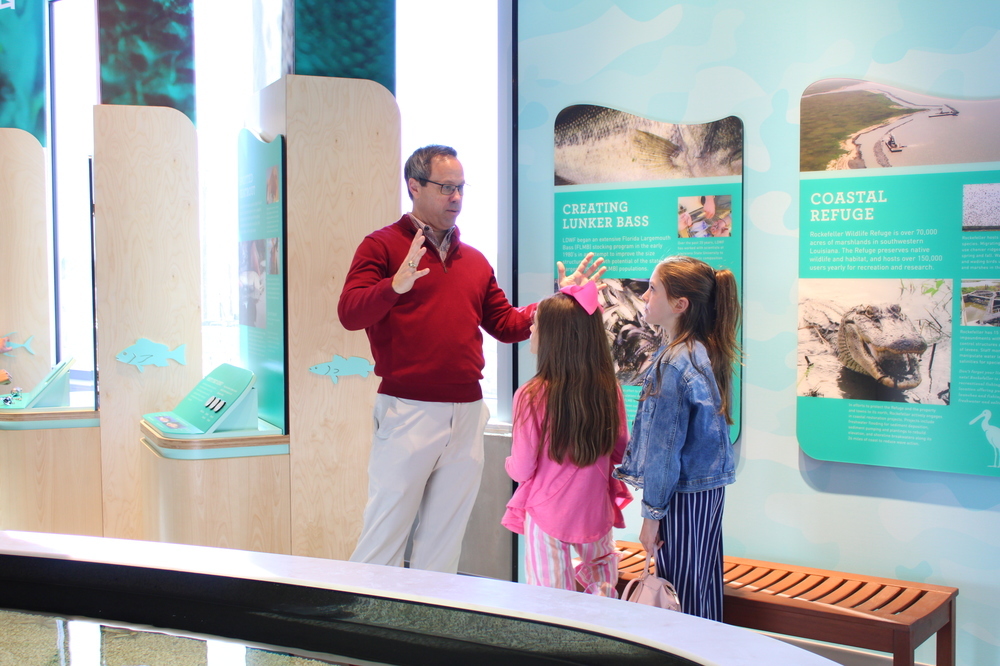 Dive into the wonders of Louisiana’s rich outdoor heritage at the Louisiana Department of Wildlife and Fisheries Nature and Science Center at Port Wonder, an educational facility located in Lake Charles, Louisiana. With over 15,000 gallons of fresh and saltwater aquarium displays, the Nature and Science Center offers a fun, educational, and family-friendly experience. Neighboring the Children’s Museum of Southwest Louisiana, it features aquariums showcasing Louisiana’s native aquatic species, along with interactive educational exhibits. In addition, an ADA-compliant fishing pier is accessible along the City of Lake Charles boardwalk, providing visitors the opportunity to fish some of the species featured inside! The LDWF aims to foster community involvement at the Nature and Science Center and fishing pier through volunteer opportunities, partnerships, and public programming, so stay tuned for exciting updates!