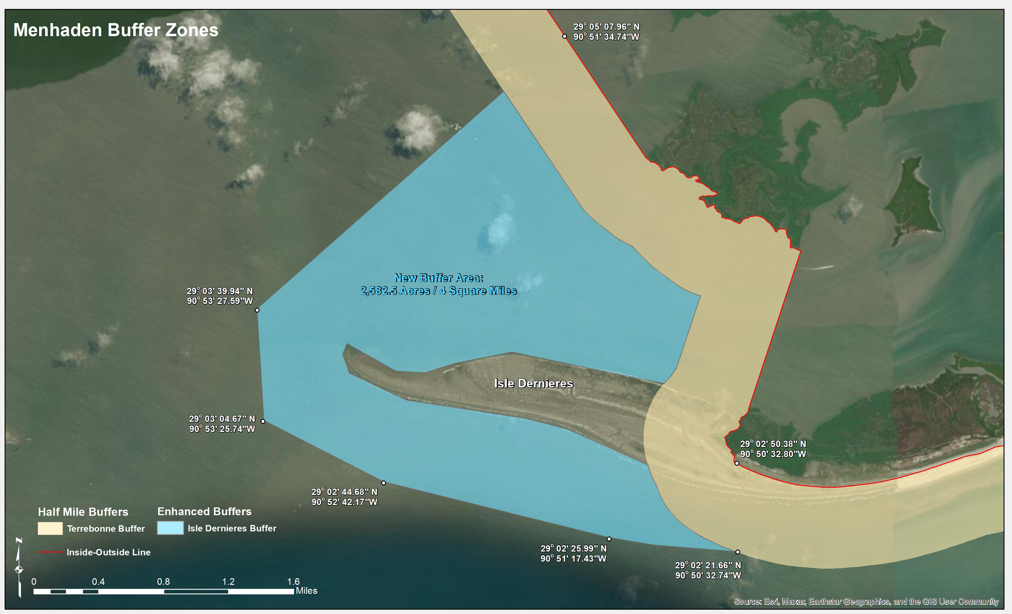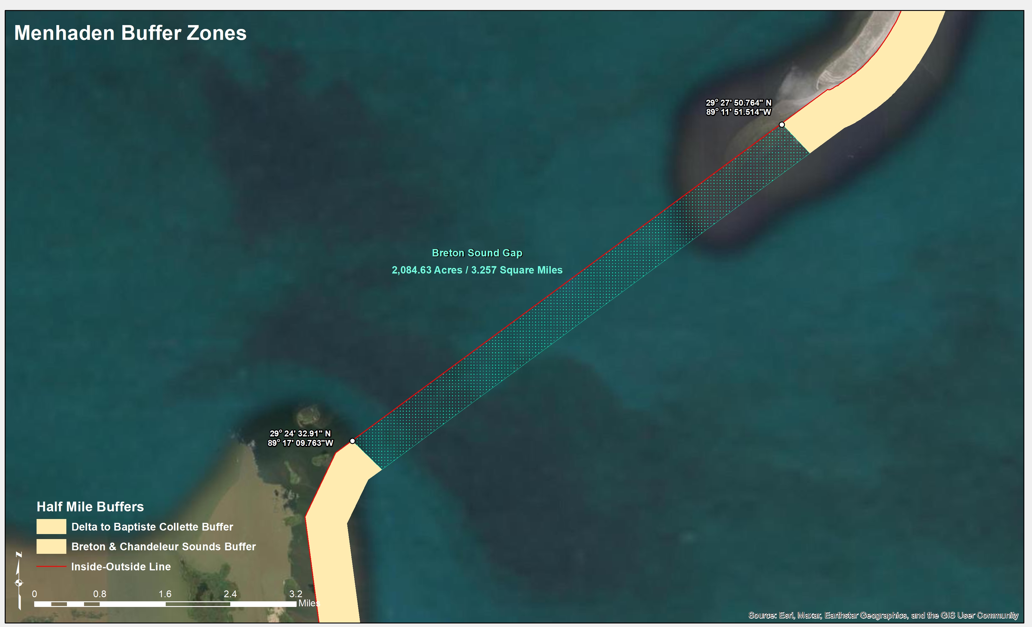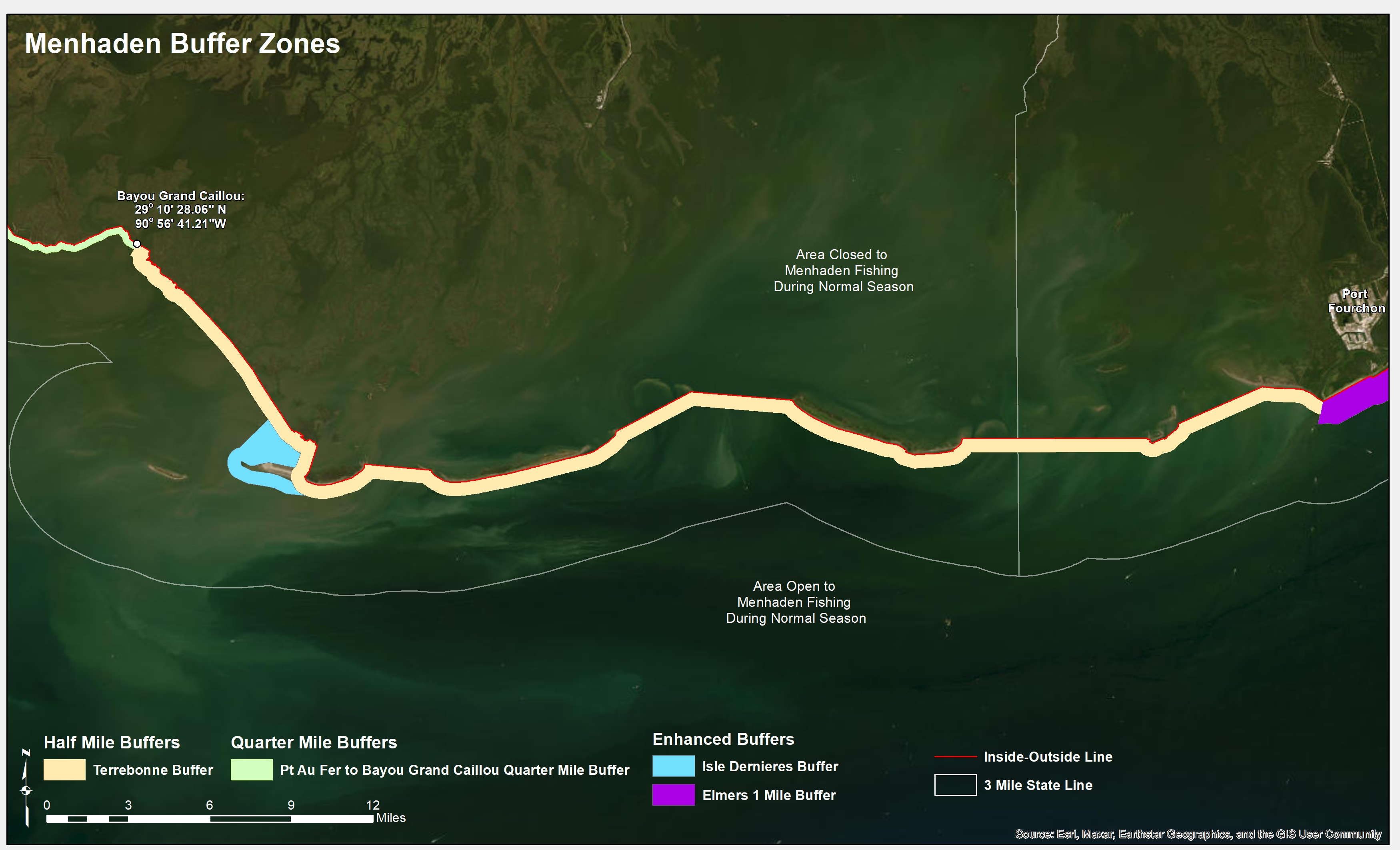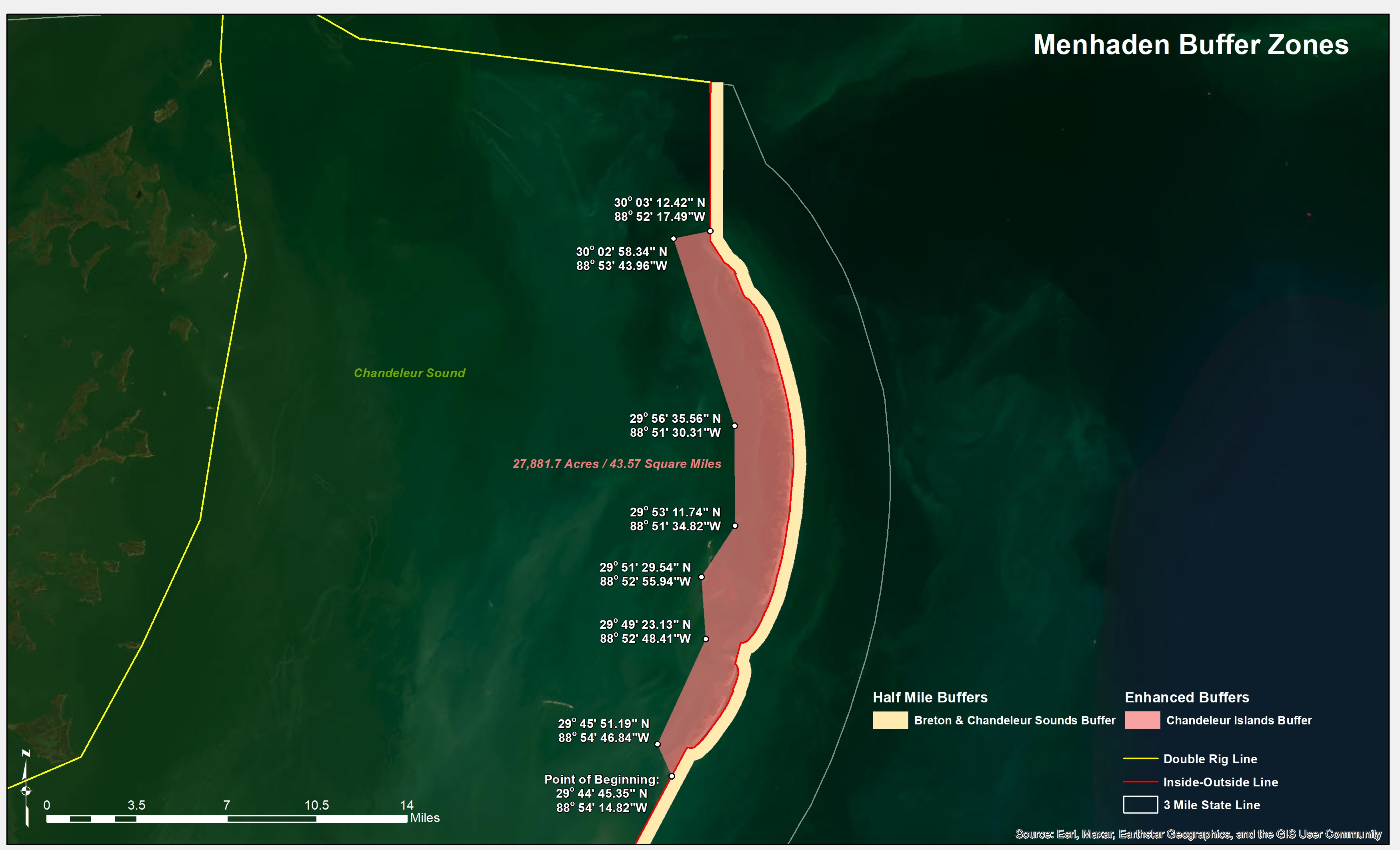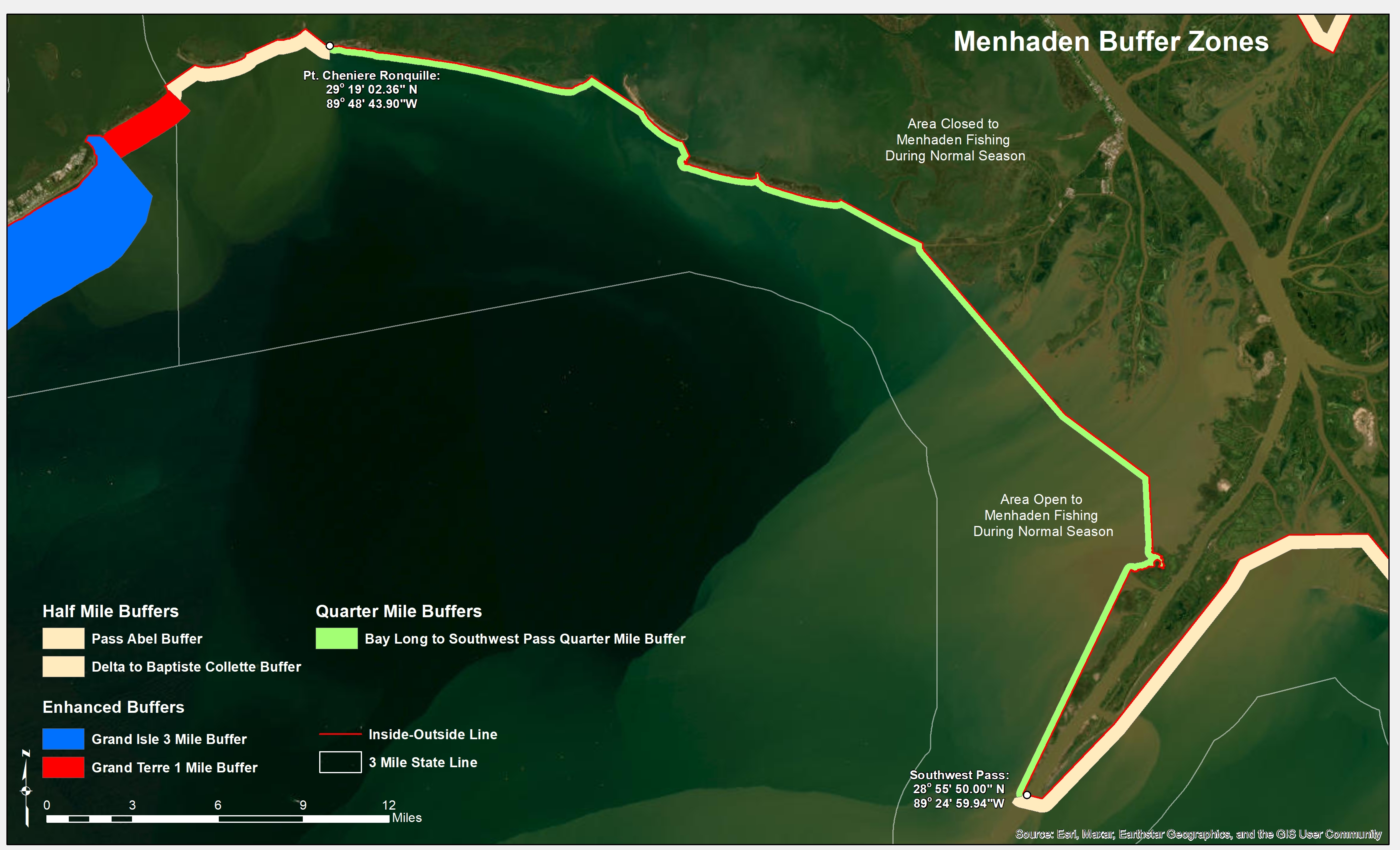 Louisiana Menhaden buffers vary statewide depending on location, see maps below.