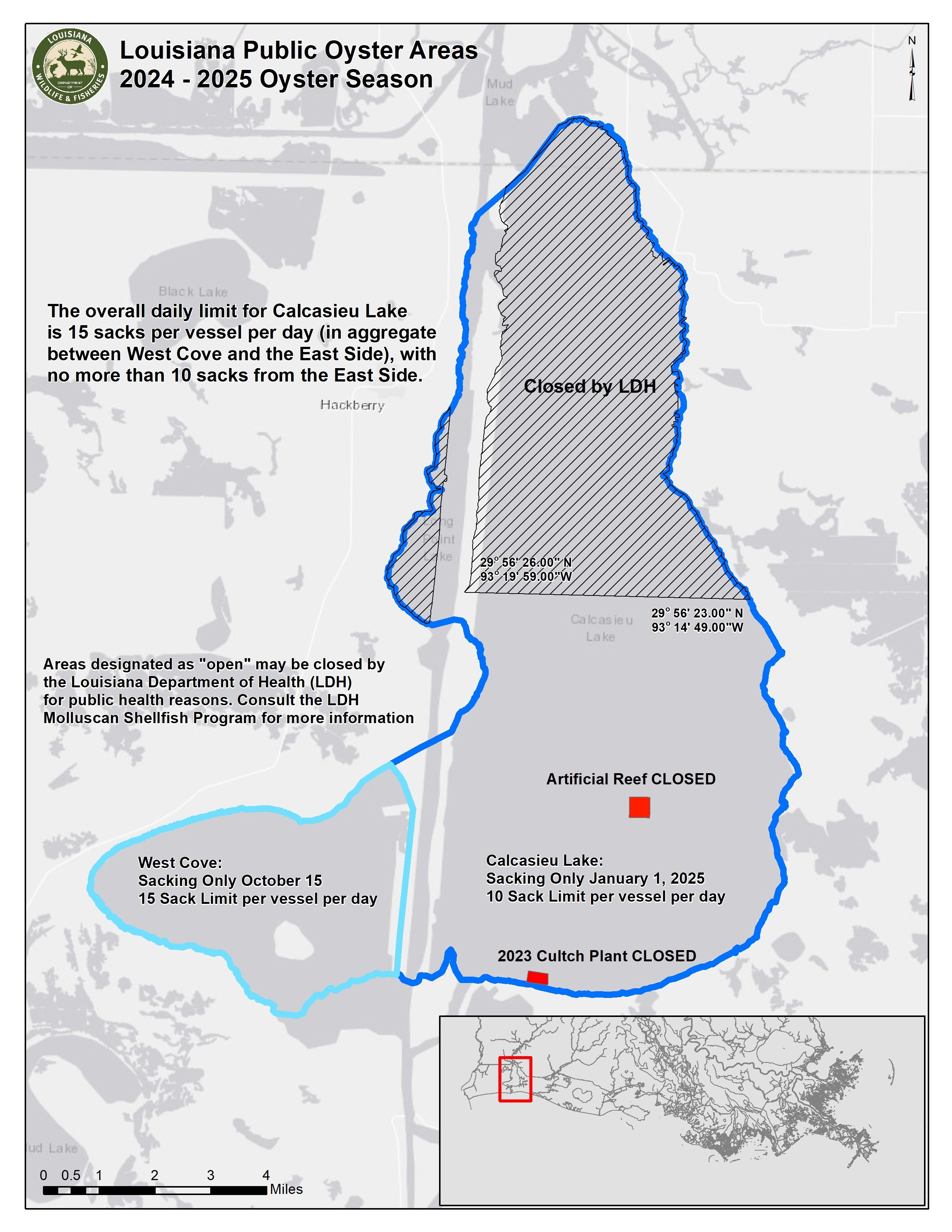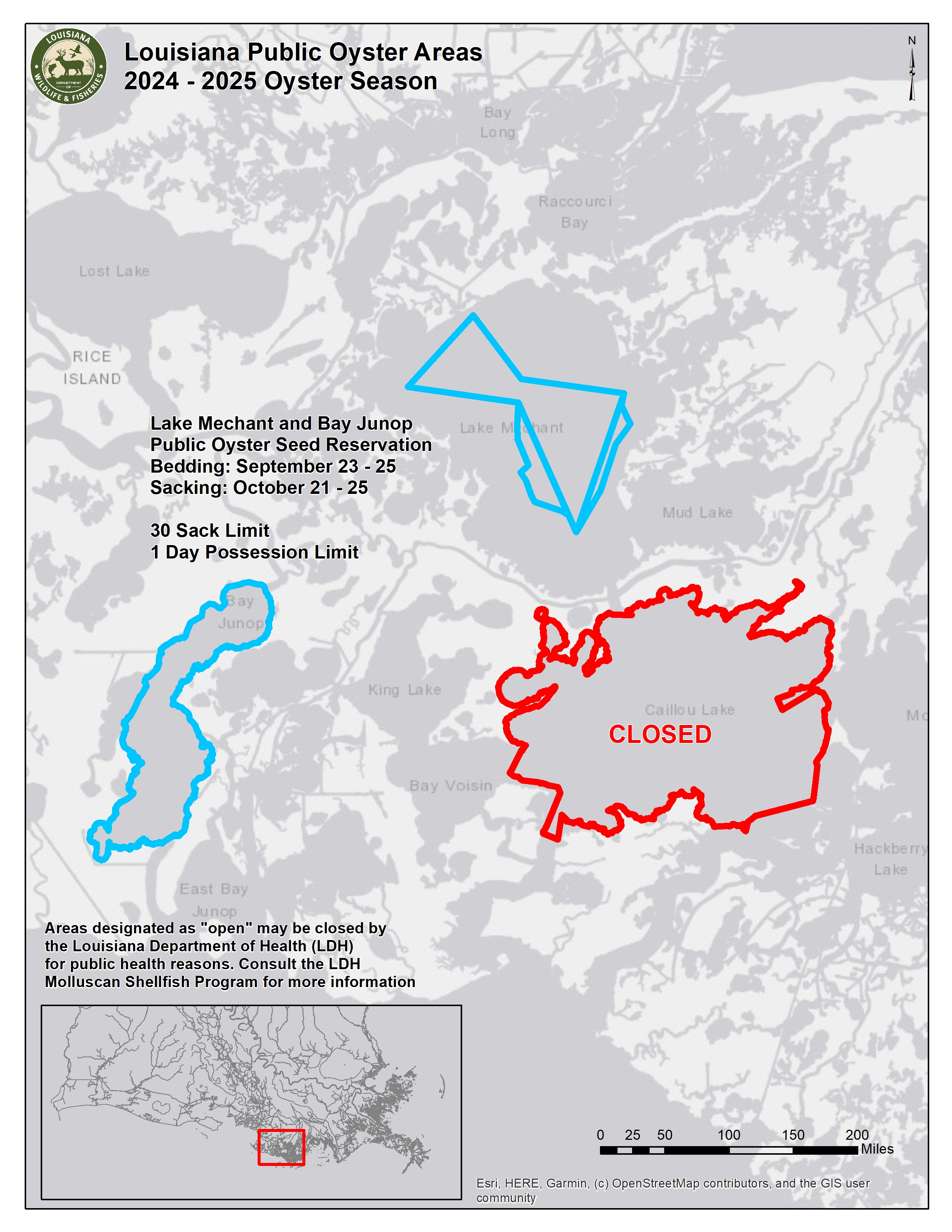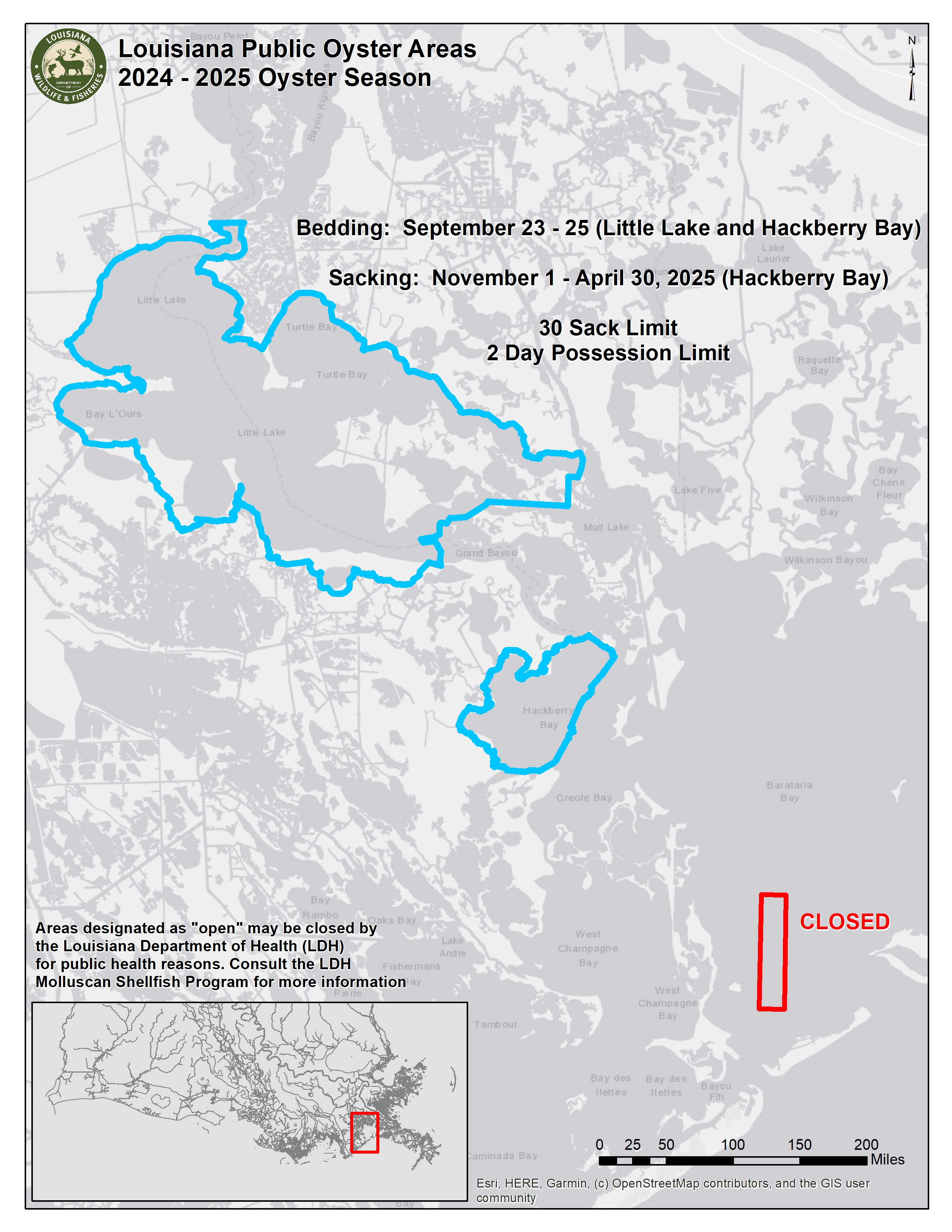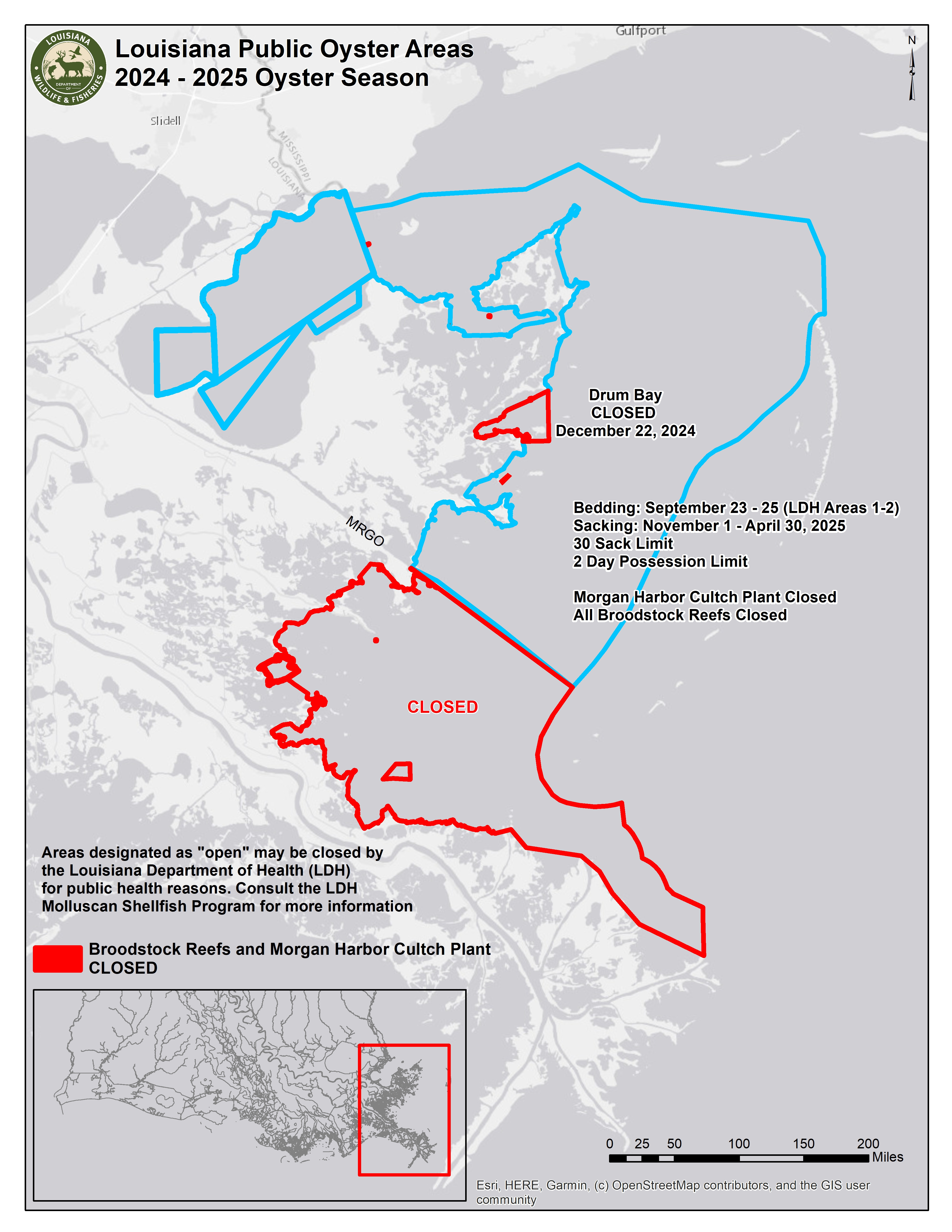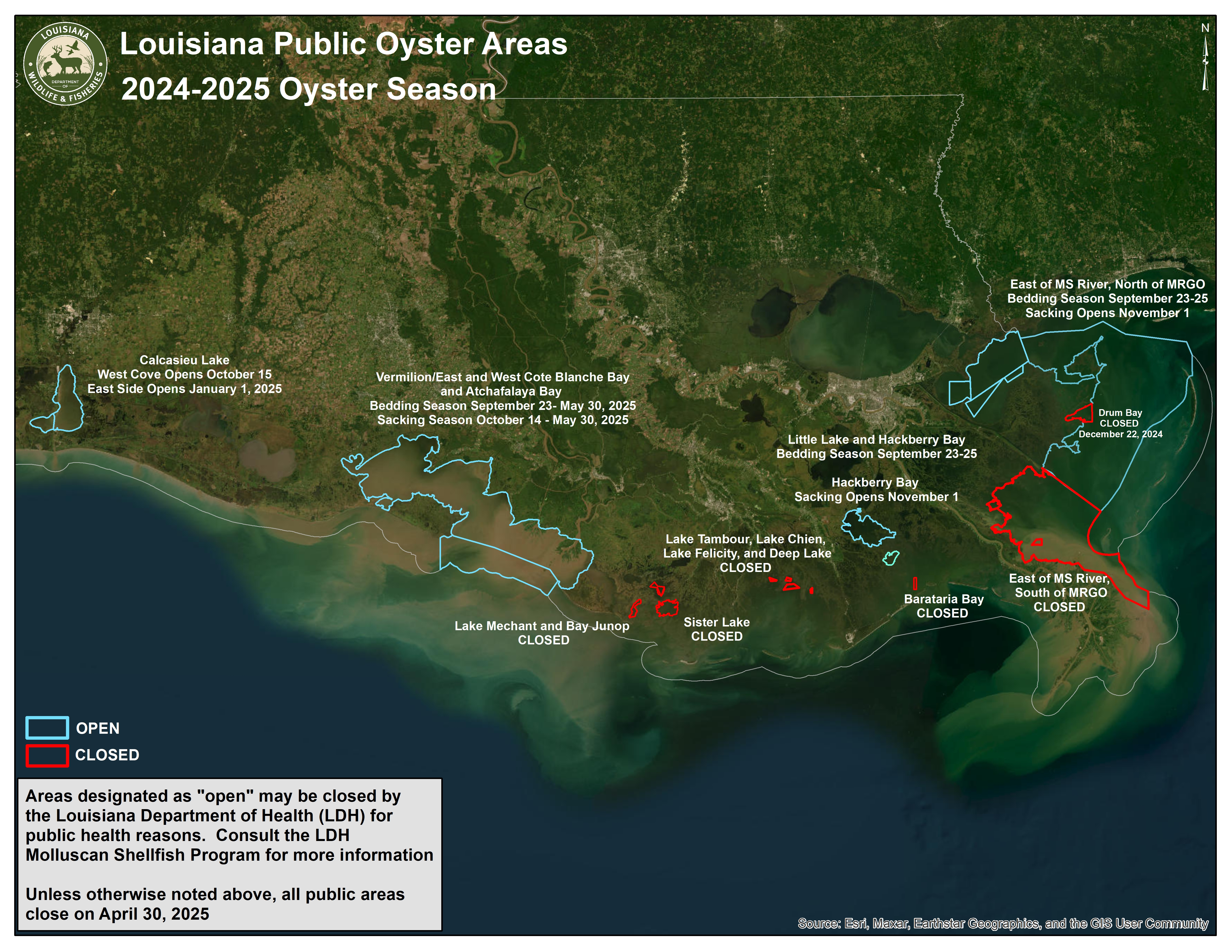 The Louisiana Department of Wildlife and Fisheries (LDWF) would like to remind oyster harvesters that the 2024-2025 public oyster season has concluded, and all public oyster areas in Louisiana are currently closed.